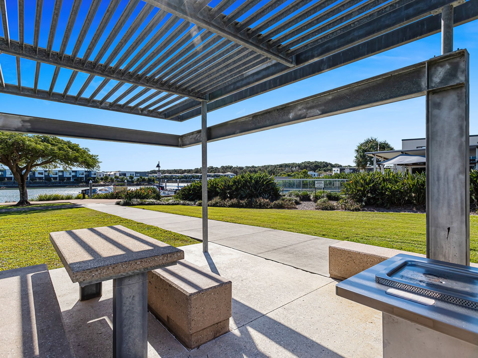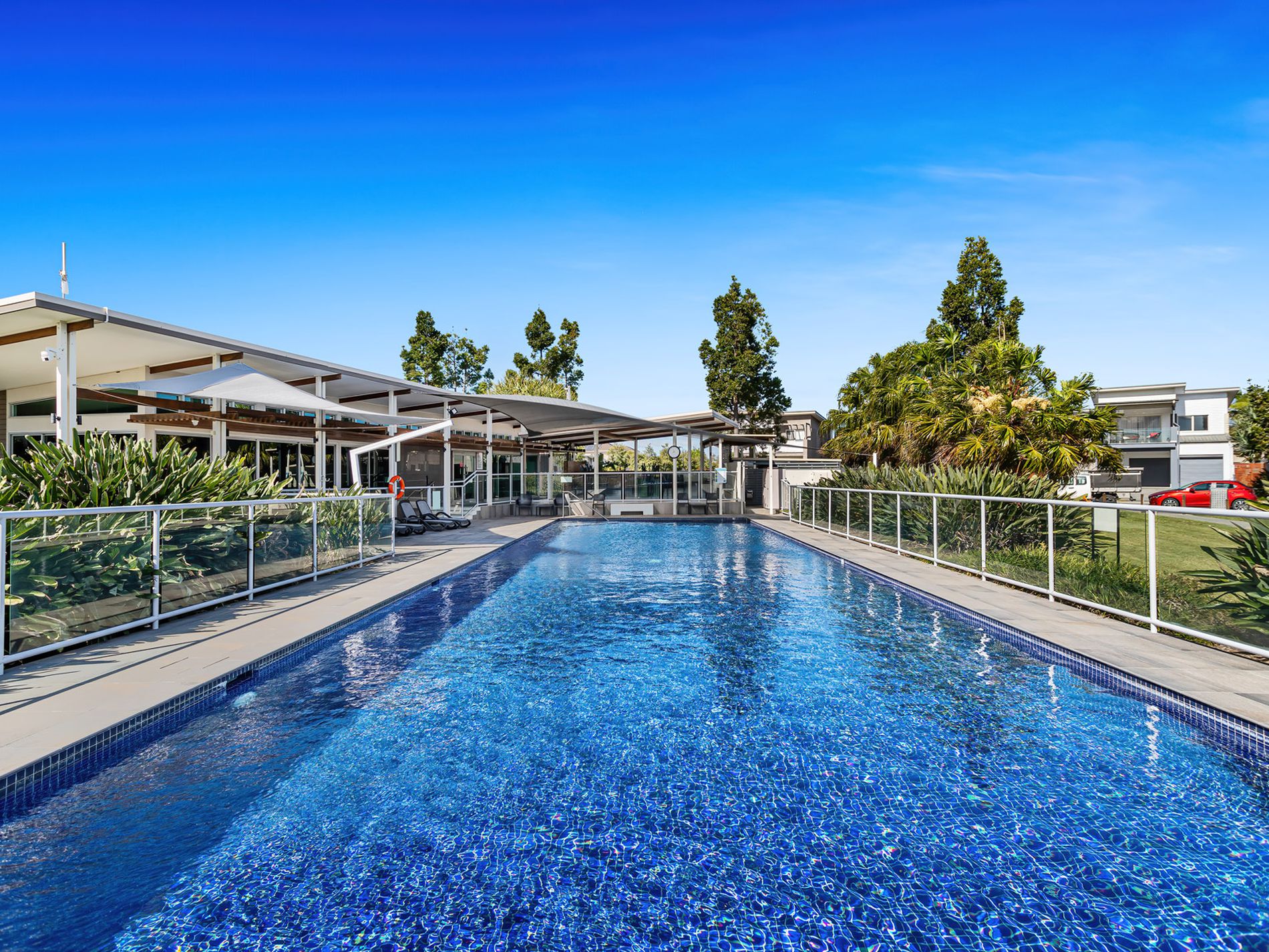 Seamless indoor-outdoor flow is achieved via wide stacker doors leading to an alfresco entertaining terrace. Here, electric outdoor blinds give you complete control over sun, shade, and privacy, perfect for a morning coffee or an intimate evening drink, while the surrounding landscaped gardens add a touch of resort-inspired tranquillity. The grassed yard, accessed via the side of the home, offers a perfect play area for kids and pets.